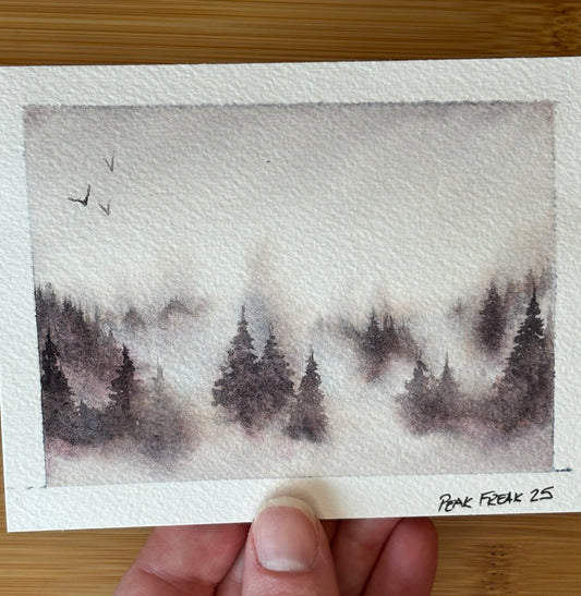 Foggy Forest Mountain Mini Watercolor Painting