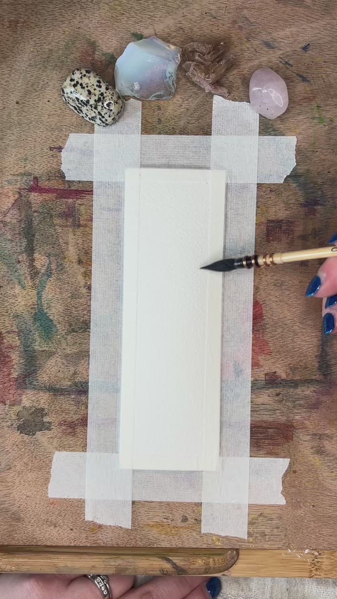 7"x2" original watercolor painting on 100% cotton paper in a clear plastic cover with 100% cotton tassel.
