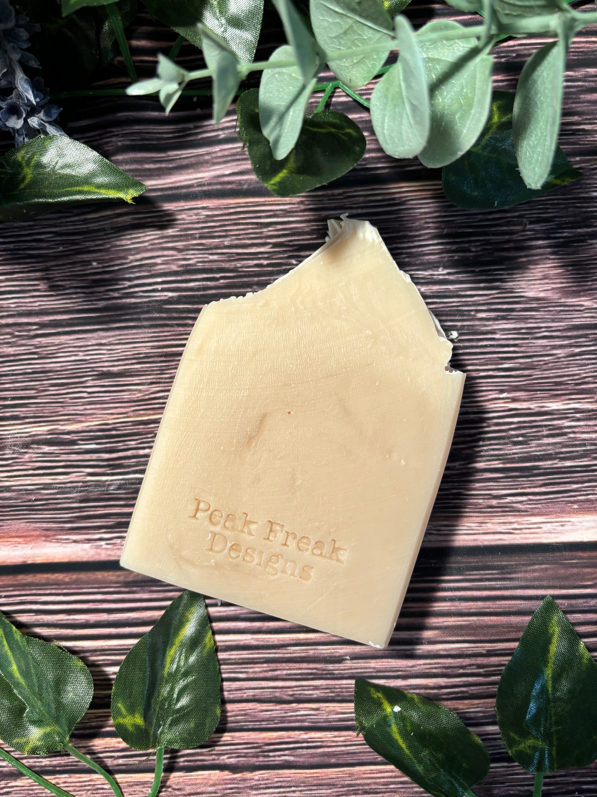 Ingredients: Water, Lye, Olive Oil, Coconut Oil, Ethically Sourced Palm Oil, Raw Shea Butter, Raw Cocoa Butter, Castor Oil, Kaolin Clay, Honey, Oats, Milk & Honey Fragrance Oil.