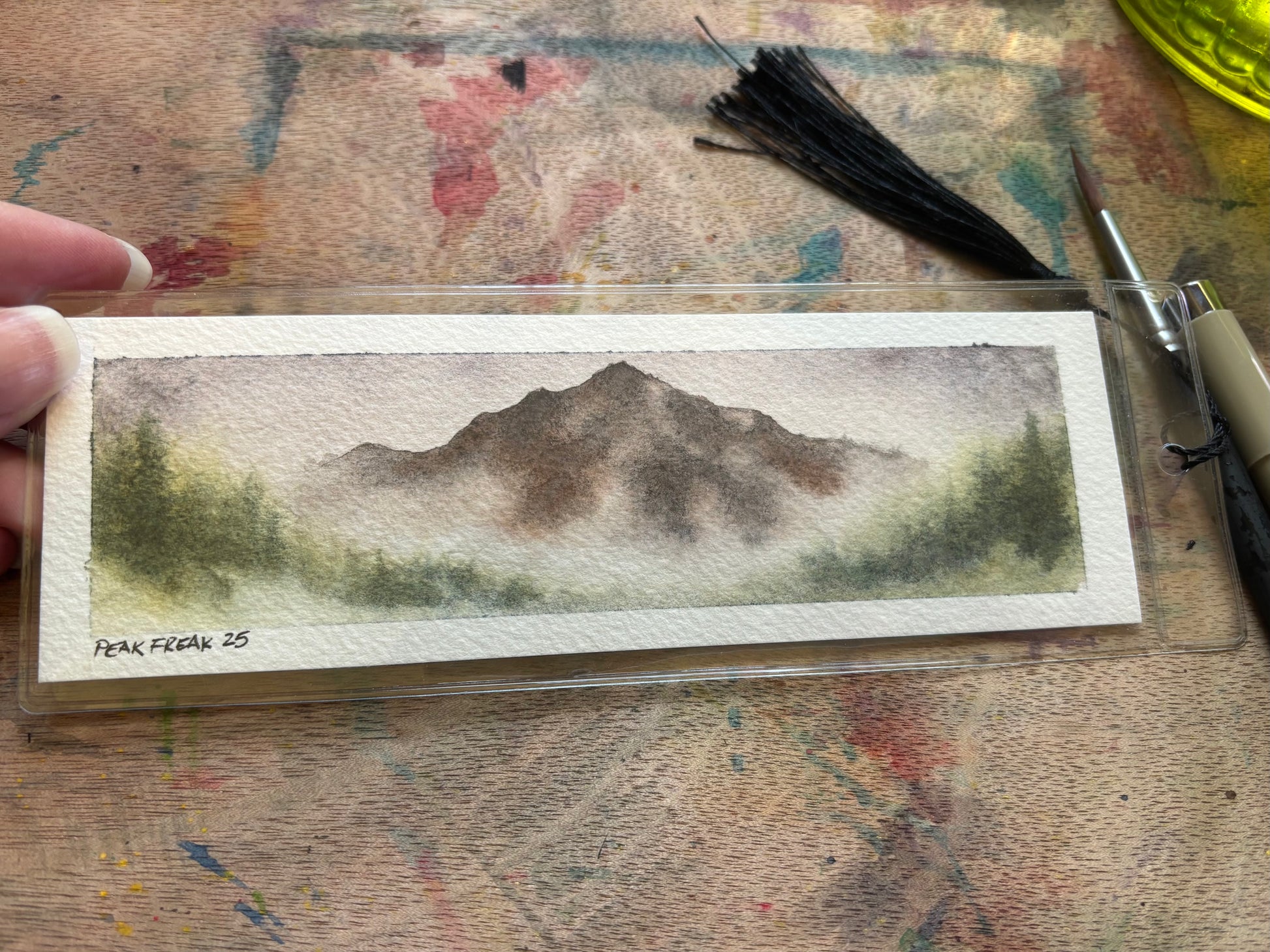 Mountain's Out! An original watercolor bookmark. In the hush between the trees, the mountains call and I answer. The Pacific Northwest in all its finest.