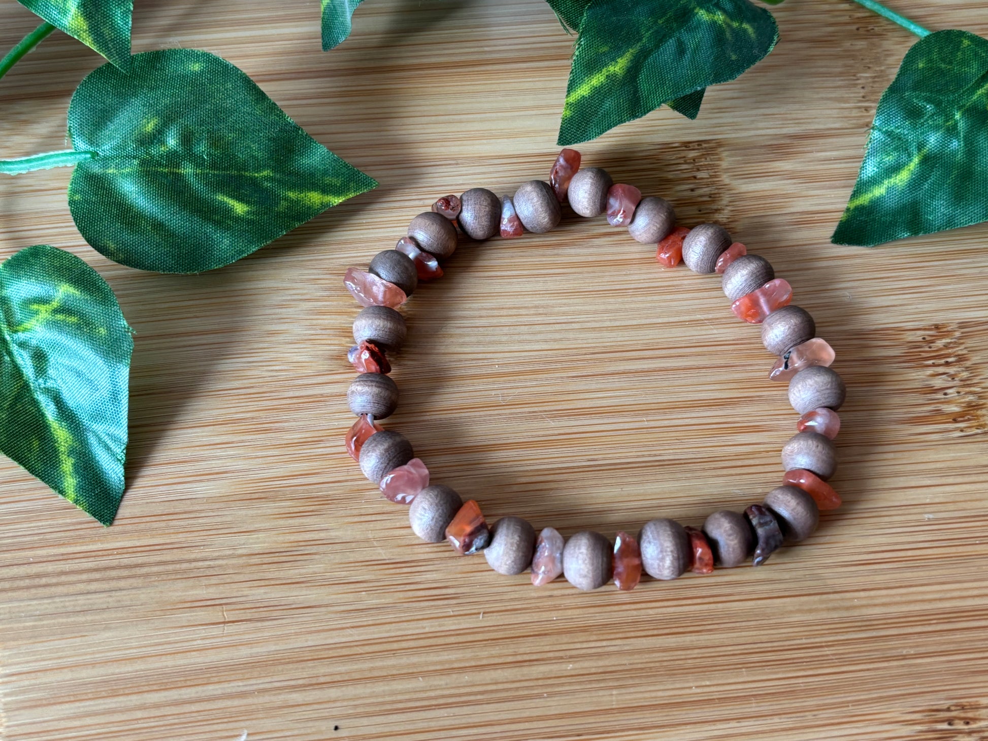 Red Agate & Natural Wood Bracelet