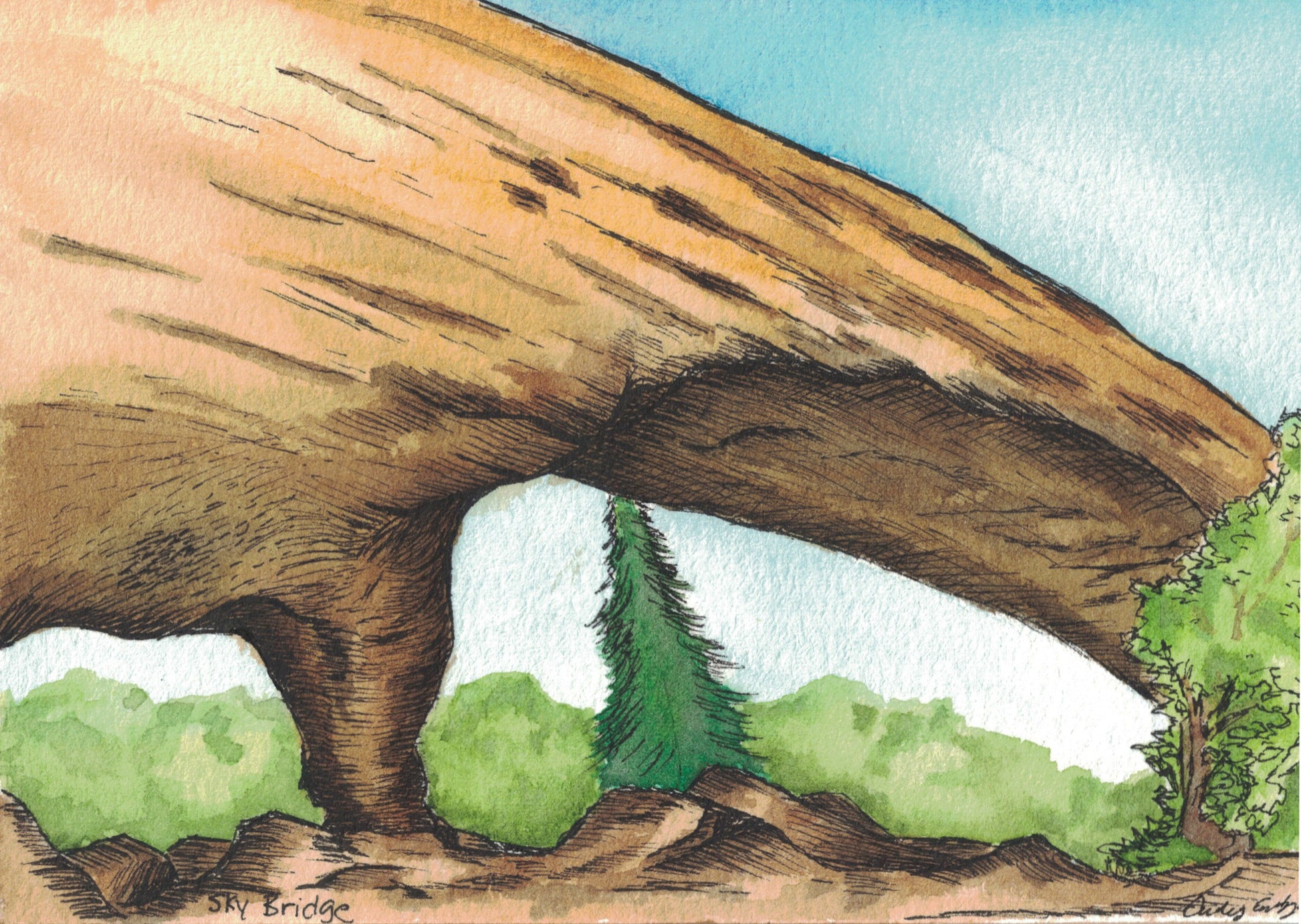 4.2"x5.5" print of the watercolor painting "Sky Bridge Arch." Printed on premium heavy card stock. FRAME NOT INCLUDED.